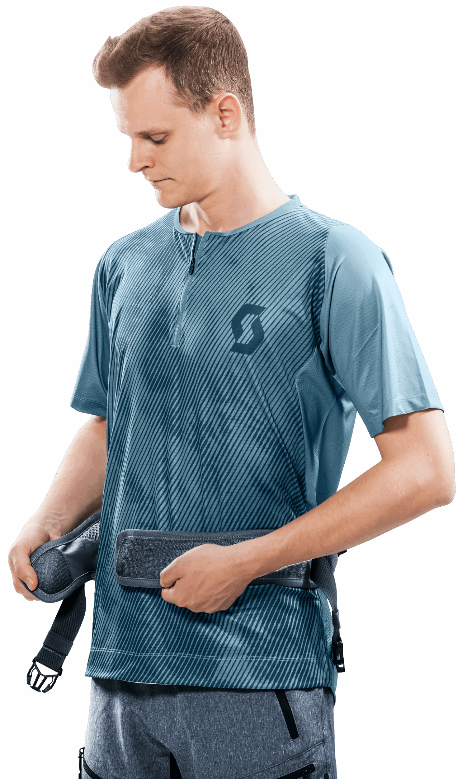 Das komfortable Tragesystem mit elastischem Hüftgurt und neuem, luftdurchlässigen, schnell trocknenden Abstandsgewirke (Air Spacer Mesh) garantiert eine maximale Belüftung des Rückens und sitzt auch auf sportlichen Trails kompakt am Körper.