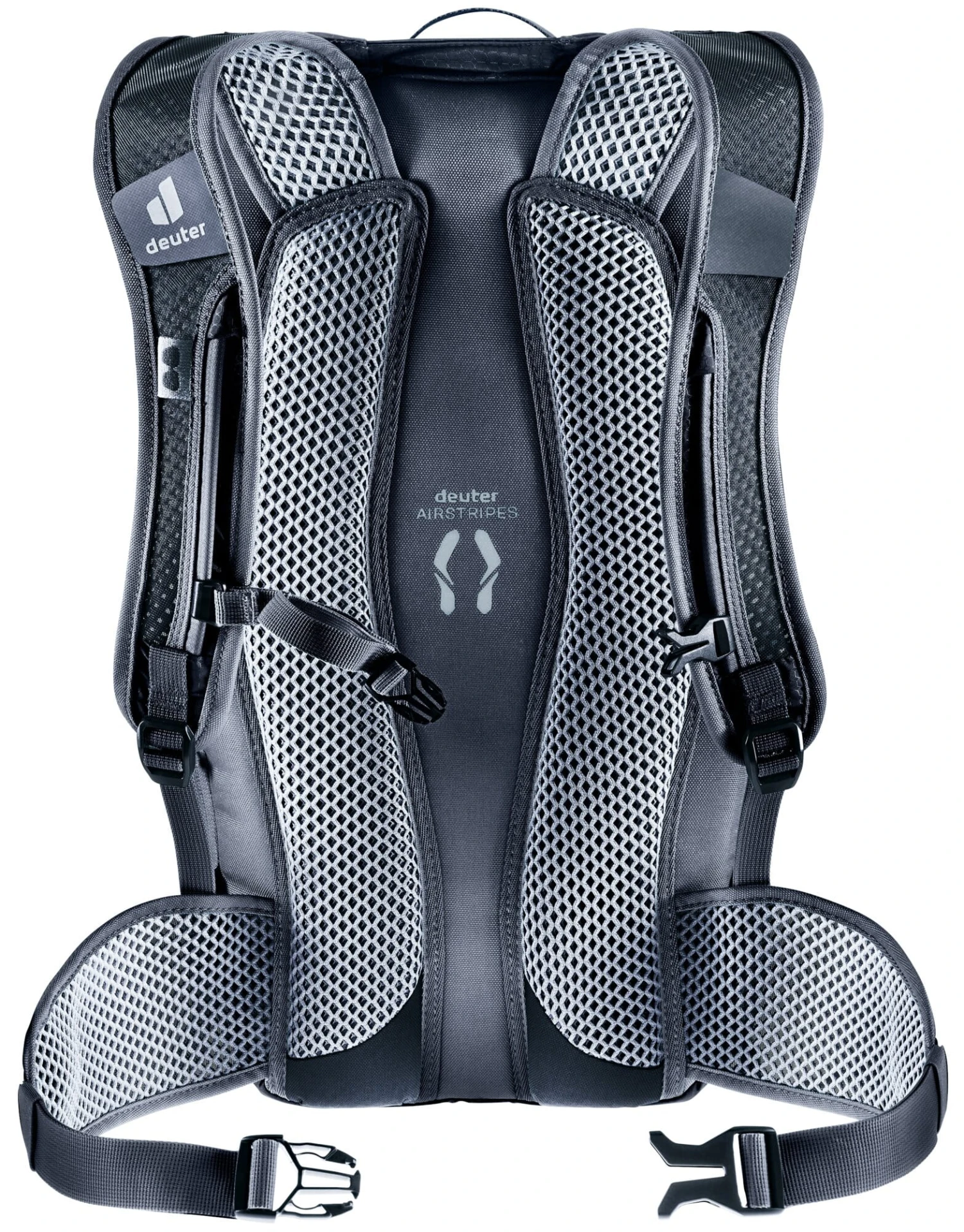 Das luftdurchlässige Airstripes Rückensystem garantiert eine gute Belüftung des Rückens und sitzt auch auf sportlichen Trails kompakt am Körper. Zusätzlich halten der Brustgurt mit neuer einhändig bedienbarer Brustgurtschnalle und die Netzhüftflossen den Packsack optimal in Position, auch wenn es mal ruppiger zugeht.