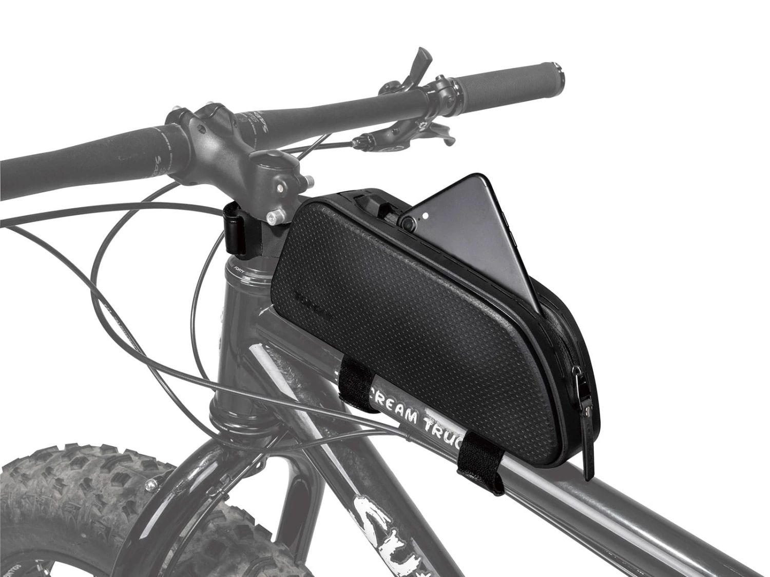 Diese wetterfeste Hartschalentasche zeichnet sich durch eine schnittige Form aus, um Kontakt mit den Beinen zu vermeiden und noch aerodynamischer zu sein. Die Drybag X bietet schnellen und einfachen Zugriff auf die wichtigste Ausrüstung, wie etwa Minitools, Snacks oder auch das Smartphone und andere Dinge und das große, über einen Reißverschluss zugängliche Hauptfach bietet einen sicheren Aufbewahrungsort dafür. Die Tasche wird mit robusten Nylonstraps am Oberrohr und dem Steuerrohr befestigt und hält dort sicher und zuverlässig.