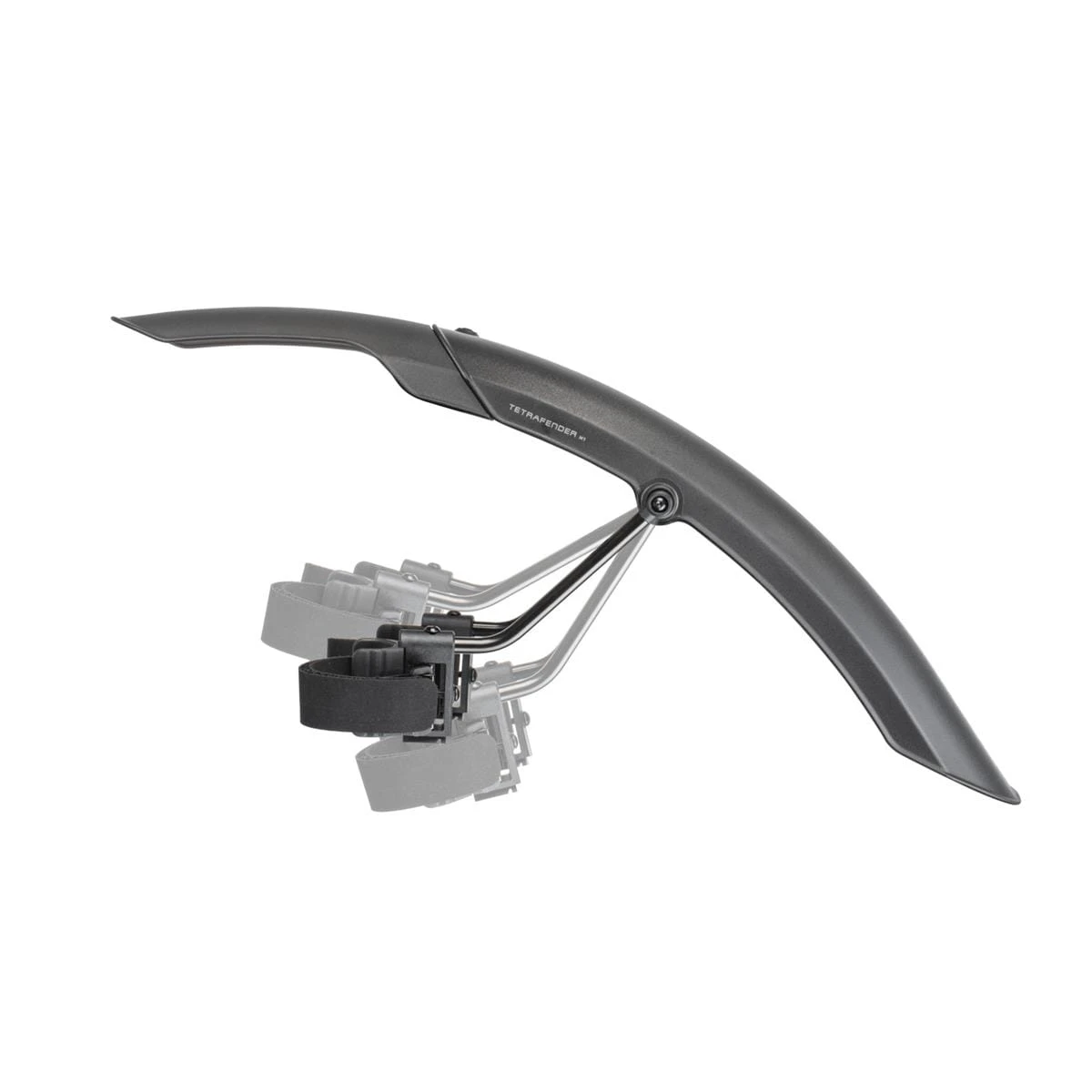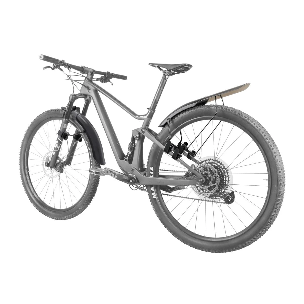 MTB-Schutzblechsystem zur einfachen und sicheren Schnellmontage mit Klettgurten an der Gabel. Einstellbare Aluminiumstreben sorgen für eine optimale Reifenabdeckung und einen hervorragenden Schutz. Die polierte Unterseite verhindert Schmutzanhaftung effektiv und lässt sich besonders leicht reinigen.