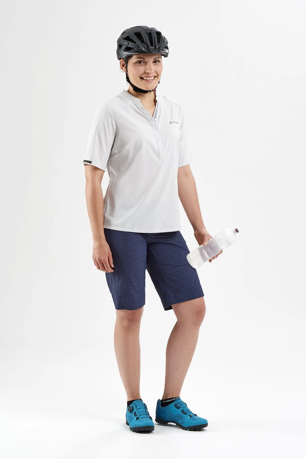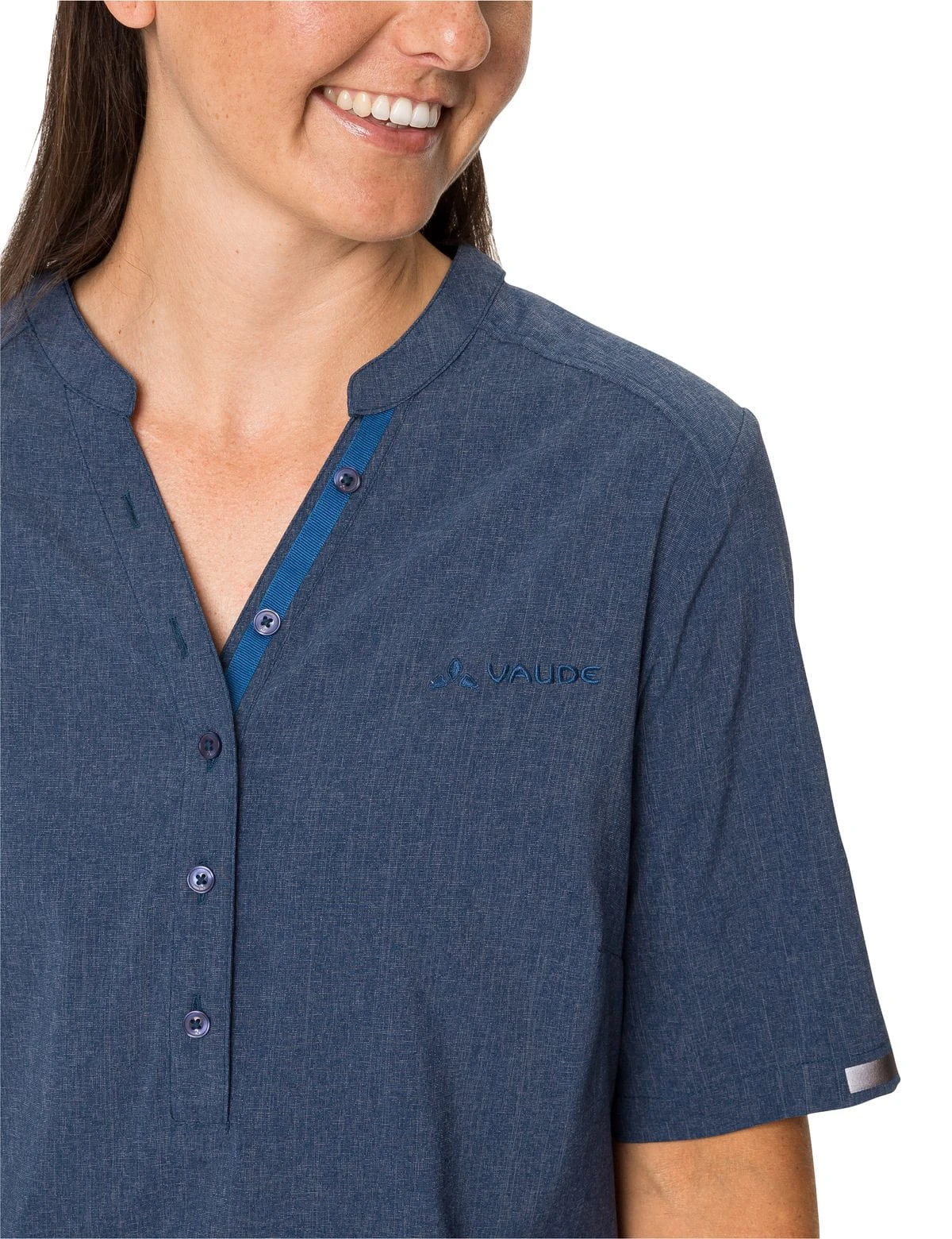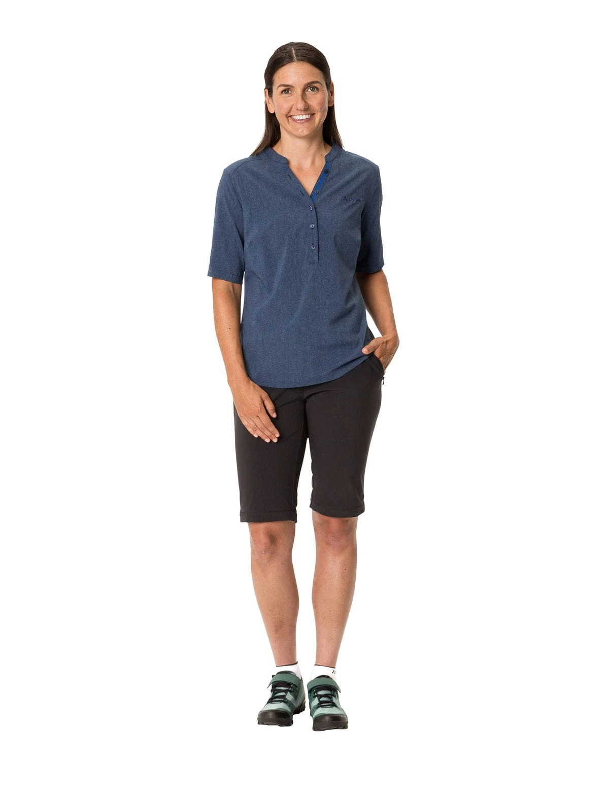 Mit dem Women’s Turifo Shirt II ist man auf dem Rad immer gut gekleidet! Die schlicht designte Bluse eignet sich für Radreisen genauso wie für den Alltag. Ihr leichtes Stretchmaterial ist atmungsaktiv, trocknet schnell und bietet volle Bewegungsfreiheit beim Radfahren. Dank des etwas längeren Schnitts reicht die Bluse auch in Fahrposition bis über das Gesäß. Die schöne Melange-Optik mit modischer Kragenlösung und Knopfleiste macht aus der taillierten Bluse ein flexibel einsetzbares Kleidungsstück, das man unterwegs schnell schätzen lernt. Das VAUDE Green Shape-Label steht für ein umweltfreundliches, funktionelles Produkt aus nachhaltigen Materialien.